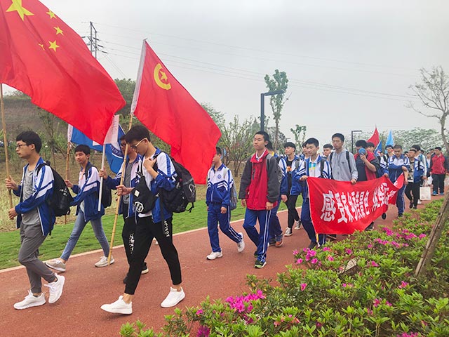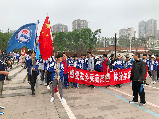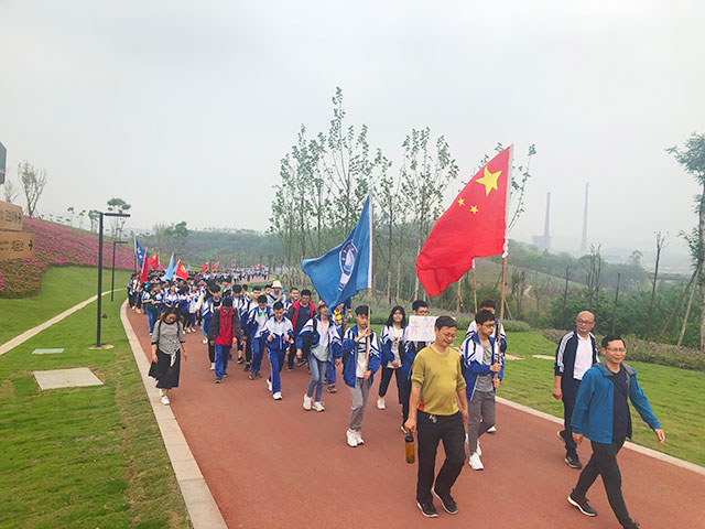 2019年4月16日,在学校领导的精心指导下,本年级全体师生开展了《感受家乡秀美景色,体验釜溪绿道》的社会实践教育活动。上午8:30学生在毛家坝网红桥对面的啤酒广场集合,清点人数后8:40准时出发,沿着河边人行道前行,步行到花海玫瑰庄园外的广场集合,然后解散,分班休息,开展相关活动。下午14:10分集合,14:30准时出发,原路返回在出发点集合清点人数约17:00解散,全程约20公里。