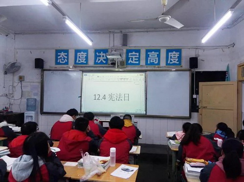 宪法是国家的根本大法,守法必先守宪,为了让学生深入了解《宪法》,做到知宪、守法,做合格公民,12·4宪法日这天,自贡六中利用早自习的时间,由政教处钟红律主任对全校学生进行了宪法知识宣讲。