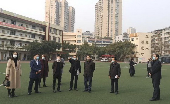 2月27日上午,自流井区向军区长、杨光全副书记、每桂英副区长、自流井区教体局李良生局长、曾圆圆副局长、王世俊书记一行到六中检查指导疫情防控工作,学校所有校级干部、部分中层干部陪同。
