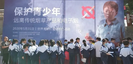在“5.31”世界无烟日来领之际,自贡六中联合区爱卫会、郭街办事处共同举办了以“保护青少年,远离传统烟草产品和电子烟”为主题的宣传教育活动,向学生宣传“吸烟有害健康”“正视危害,远离烟草”