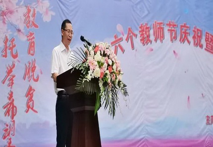 9时许,庆祝暨表彰大会开始,在庄严的升国旗仪式后,陈国亮校长发表热情洋溢的讲话:他首先向老师们祝贺节日,然后回顾了学校2020年中、高考取得的辉煌成绩及近几年学校良好的发展态势,勉励老师们再接再厉,以更优异的成绩回报社会各界的关心和支持。