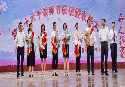 接着,学校校长陈国亮同志宣读了教师节表彰文件及表彰名单,校长陈国亮、党总支书记吴万文、副校长赵建华、陈永琼、刘强同志分别为学校“名教师”、“最具风采班主任”、“最美教师”、“教坛新秀”、“最美员工”颁发了荣誉证书,并赠送鲜花。